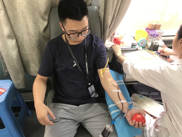 这次献血的队里,有曾经参加过献血的,也有第一次参加的。有小伙伴幽默的表示“献血不紧张,就是没想过针管有点粗”。 在献血过程中,献血站的医务人员积极向大家宣传献血常识,并且叮嘱献血后的注意事项。